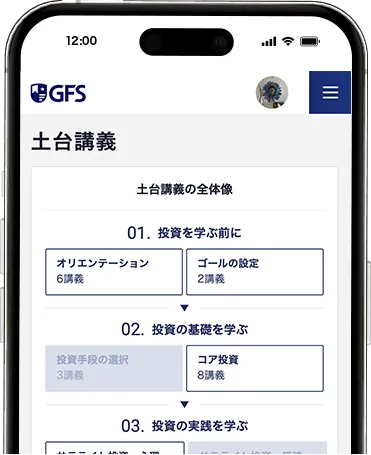 GFSでは、投資で成果を出すために大きく2段階の講義を用意しています。