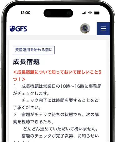 GFSでは、投資未経験で1日15分〜学習できる方を想定したモデルカリキュラムを基に、